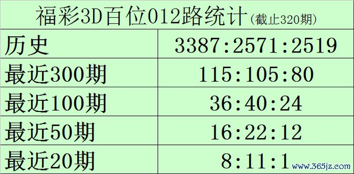 百位推选:百位最近20期号码012路比为8:11:1,当今0路号码遗漏3期,1路号码遗漏0期,2路号码遗漏1期,另外0-9号码遗漏期数辞别为: